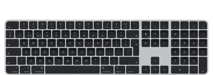 in Wireless-TastaturenApple Magic Keyboard mit Touch ID und Ziffernblock für Mac mit Apple Chipschwarz/silber, Englisch QWERTY (MMMR3Z/A)