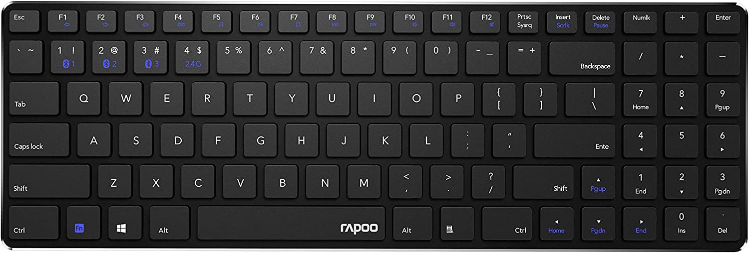 in Wireless-TastaturenRapoo E9100M kabellose ultraflache Multi-Mode Tastatur (Bluetooth 3.0, 4.0, 2.4 GHz Wireless via USB), flaches 4,9 mm Aluminum-Design, DE-Layout (QWERTZ), schwarz