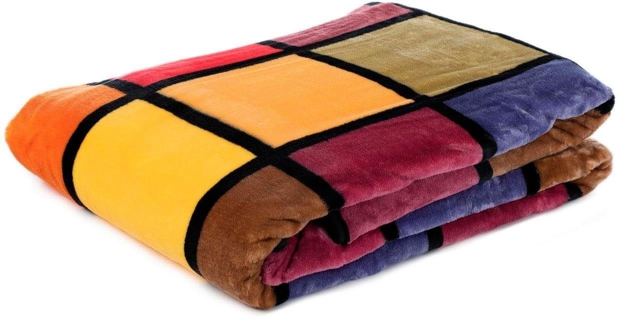 - Superweiche, mehrfarbige Decke in orange, rot und gelb, aus 100% Polyester