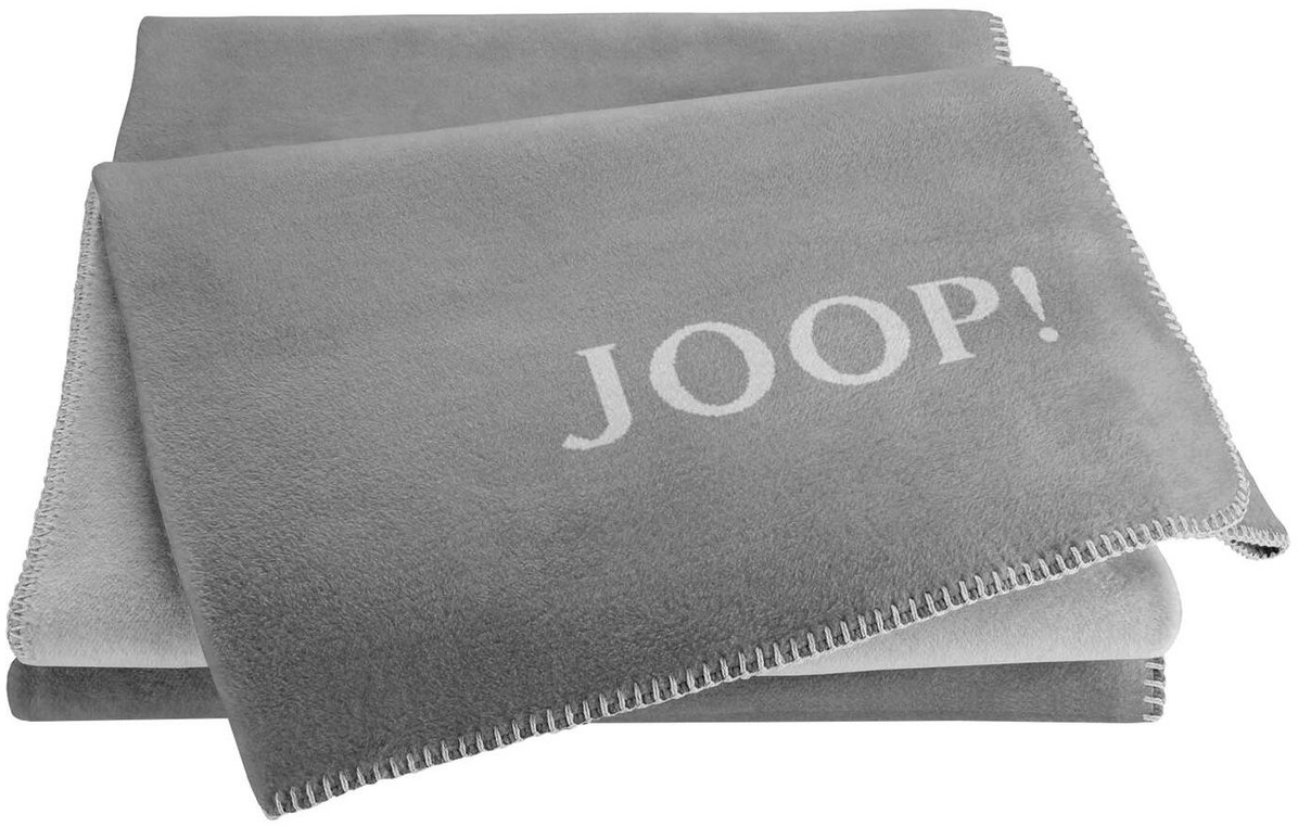 - Die Joop Wohndecke DOUBLEFACE ist eine Wendedecke mit zwei unterschiedlichen Seiten in den Farben Graphit und Grau.