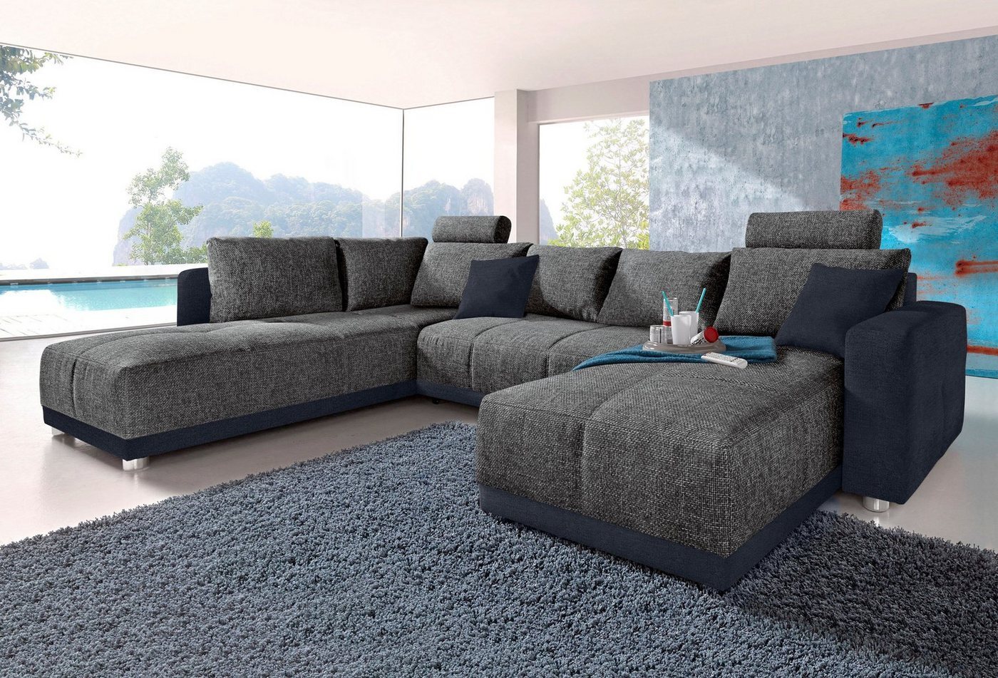 Jockenhöfer Gruppe Wohnlandschaft Orlando U-Formmit Federkern, Bettfunktion und Bettkasten, inklusive 2 Kopfstützen