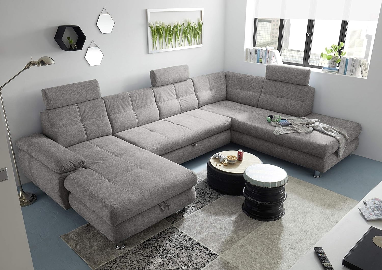 Die Stella Trading ALBA Wohnlandschaft in U-Form vereint elegantes Design mit hohem Komfort. Der strapazierfähige und atmungsaktive Stoffbezug in Silber sorgt für eine ansprechende Optik. Mit großzügigen Abmessungen von 349 x 88 x 233 cm (B/H/T) bietet sie ausreichend Platz zum Entspannen. Die ausziehbare Liegefläche von 275 x 127 cm und der praktische Bettkasten machen sie zur idealen Wahl für Gäste und Familien. **Highlights** - Ausziehbare Liegefläche: Schafft im Handumdrehen einen bequemen Schlafplatz. - Bettkasten: Geräumiger Stauraum für Bettwäsche und Kissen. - Bezogener Rücken: Individuelle Platzierung im Raum möglich. - Leichte Montage: Dreiteilig und variabel aufstellbar. **Produkteigenschaften** - Strapazierfähiger Stoffbezug: Langlebig und pflegeleicht. - Atmungsaktiv: Angenehmes Sitzklima auch bei längerem Sitzen. - Großzügige Abmessungen: 349 x 88 x 233 cm (B/H/T) für die ganze Familie. - Hochwertige Verarbeitung: Mit viel Liebe zum Detail gefertigt. - Sitzhöhe: 42 cm - Liegefläche: 125 cm x 290 cm **Lieferumfang** - Wohnlandschaft ALBA - 3 Kopfstützen - Lieferung in mehreren Kartons