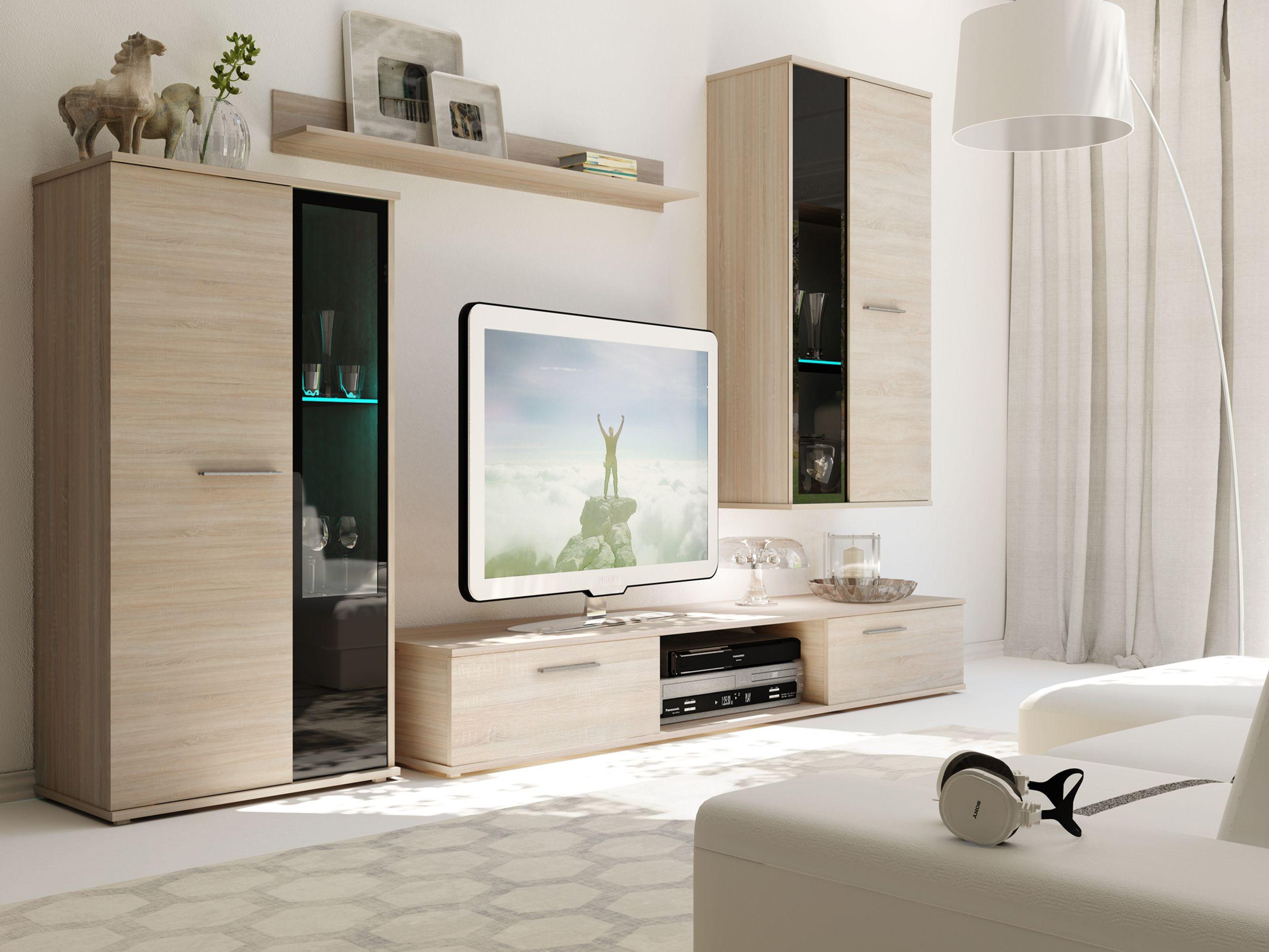 - Die Wohnwand Salsa besticht durch ihr modernes Design in Sonoma Eiche matt und schwarz, das Ihrem Wohnzimmer Stil verleiht.