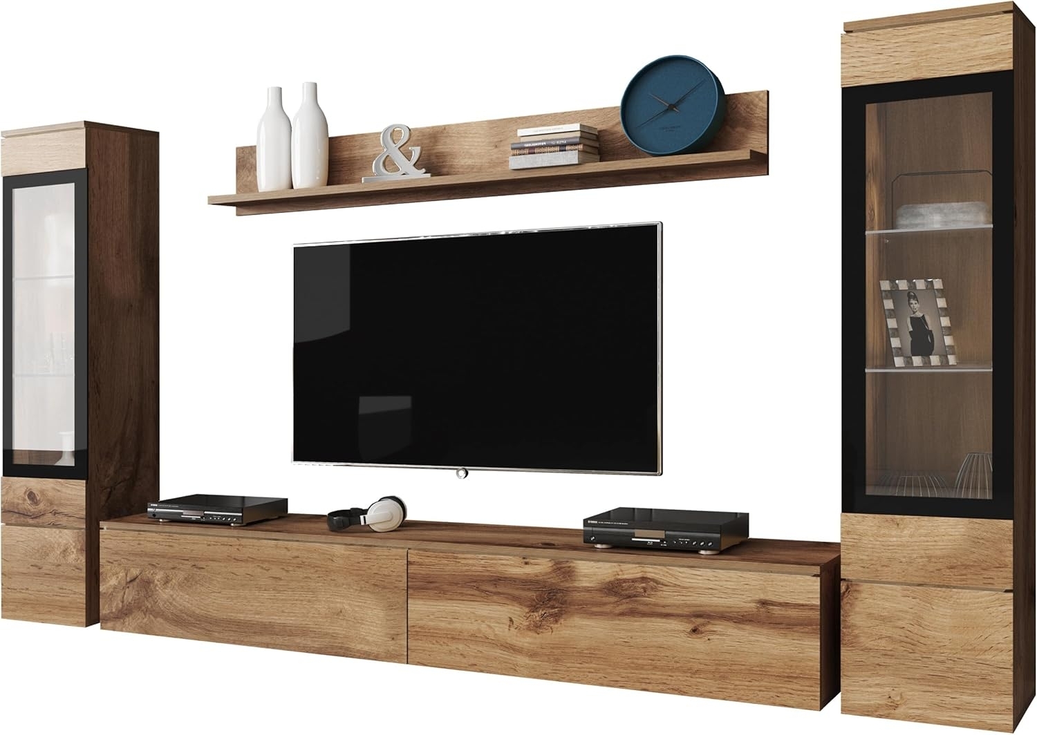 | Set-Bestandteile | 2 Vitrine, 1 TV-Lowboard, 1 Wandregal |