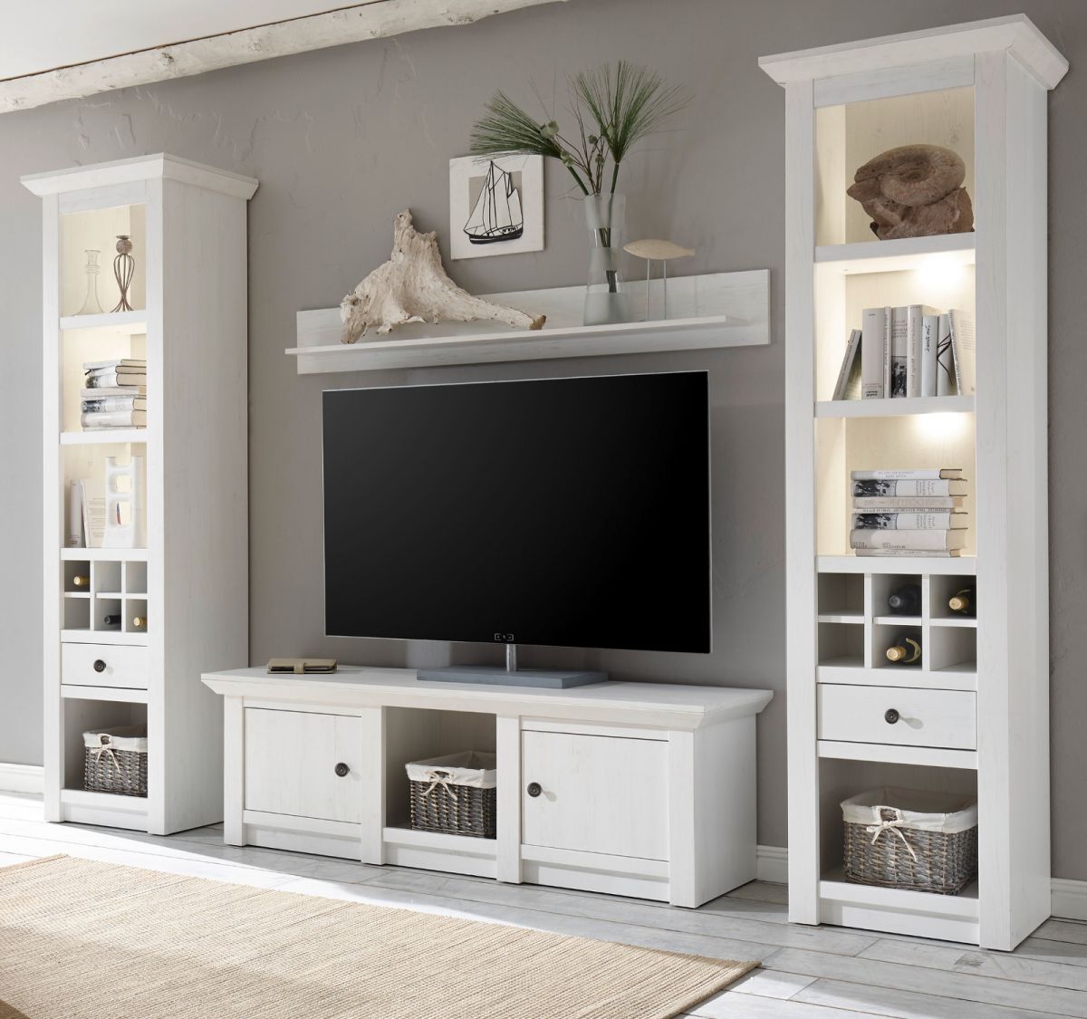 Wohnwand 4-teilig Hooge in Pinie weiß Landhaus 288 x 207 cm