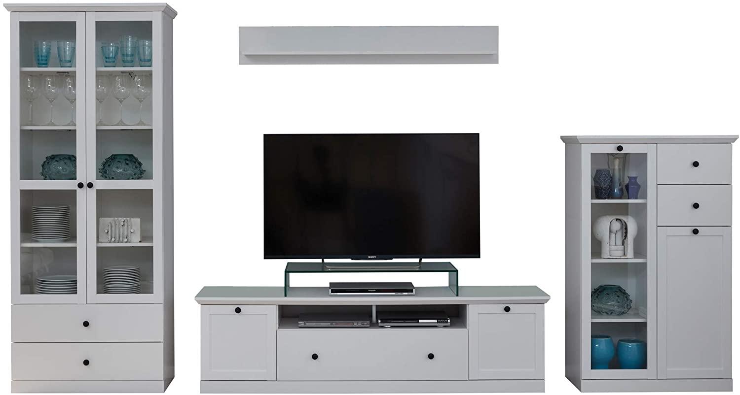 | Lieferumfang | 1x Vitrinenschrank, 1x TV-Lowboard, 1x Wandboard, 1x Highboard |