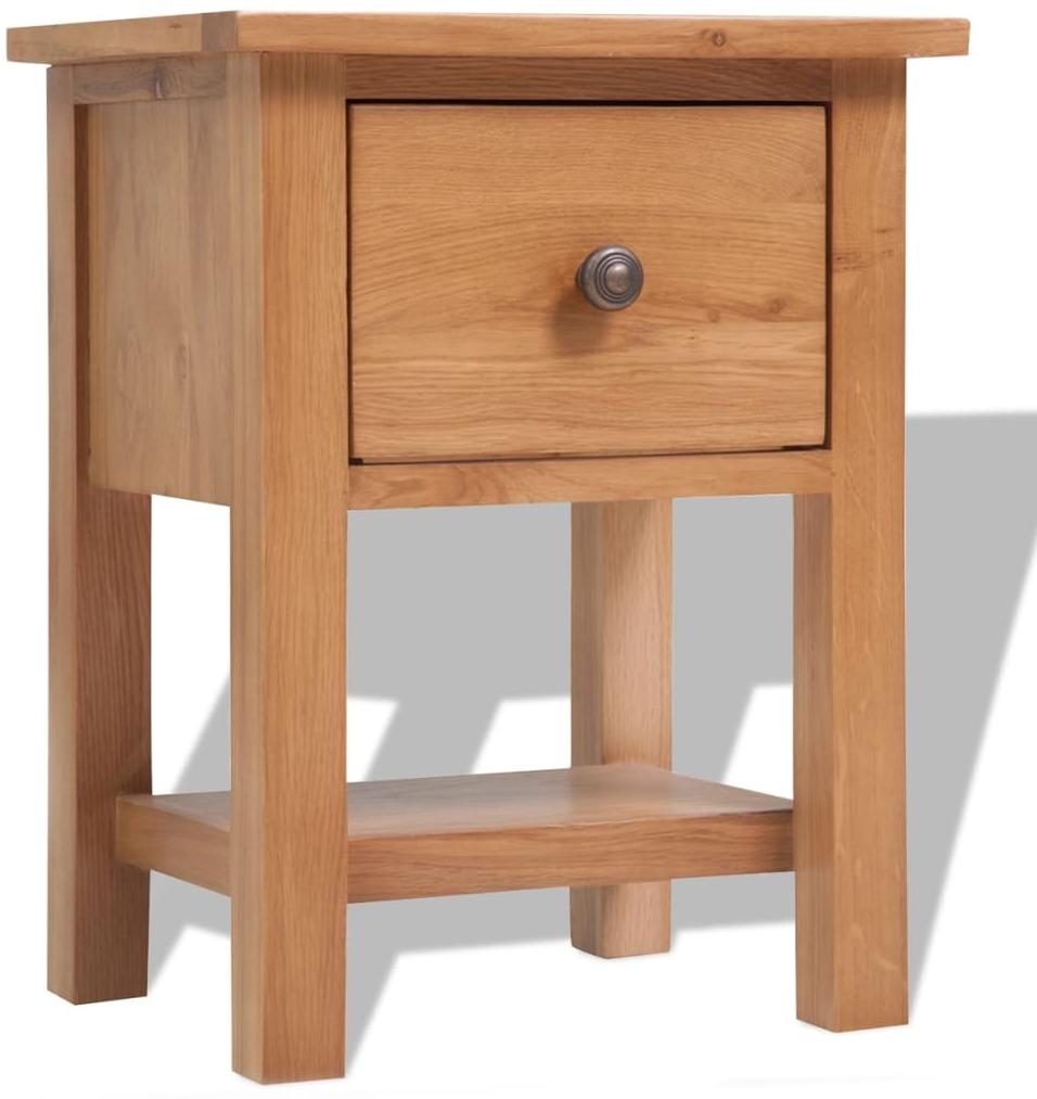 | Beschreibung | Das fünfteilige Wohnzimmermöbel-Set aus massiver Eiche bringt rustikalen Charme in Ihr Zuhause. Es umfasst einen Beistelltisch, einen Eckschrank, einen Konsolentisch, eine Anrichte und eine Tallboy-Kommode. Mit reichlich Stauraum und vielseitigen Nutzungsmöglichkeiten ist es robust und langlebig. Der einfache Zusammenbau ermöglicht eine schnelle Nutzung. **Highlights** - Rustikaler Charme für Ihr Wohnzimmer - Vielseitige Nutzungsmöglichkeiten - Extra-hohe Tallboy-Kommode für Kleinteile - Robust und langlebig - Einfacher Zusammenbau **Produkteigenschaften** - Farbe: Braun - Material: Massive Eiche + MDF - Maße Beistelltisch: 36 x 30 x 47 cm (L x B x H) - Maße Eckschrank: 26 x 26 x 94 cm (L x B x H) - Maße Konsolentisch: 50 x 32 x 75 cm (L x B x H) - Maße Anrichte: 70 x 35 x 75 cm (L x B x H) - Maße Tallboy-Kommode: 45 x 32 x 115 cm (L x B x H) **Lieferumfang** - 1 x Beistelltisch - 1 x Eckschrank - 1 x Konsolentisch - 1 x Anrichte - 1 x Tallboy-Kommode - Wandhalterung für die Tallboy-Kommode zur Vermeidung von Umkippen |