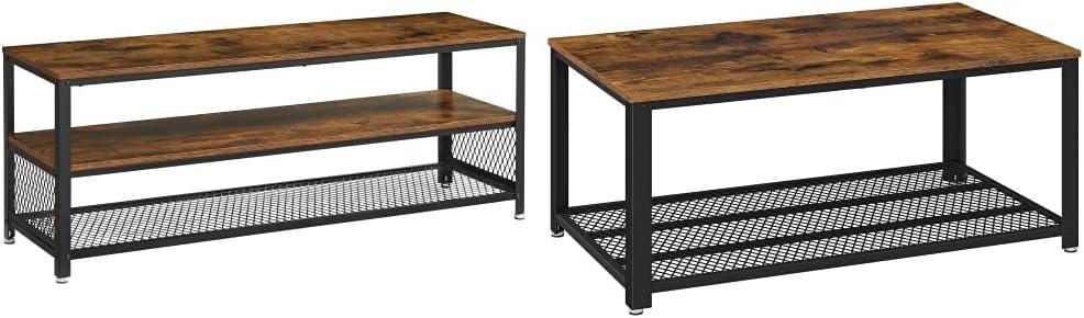 Vasagle Fernsehtisch für FernseherDunkelbraun LTV50BX, 140 x 40 x 52 cm & Vasagle Couchtisch im Industrie-Design, fernsehtisch, Wohnzimmertisch, mit großer Ablage, einfach zu montieren LCT61X