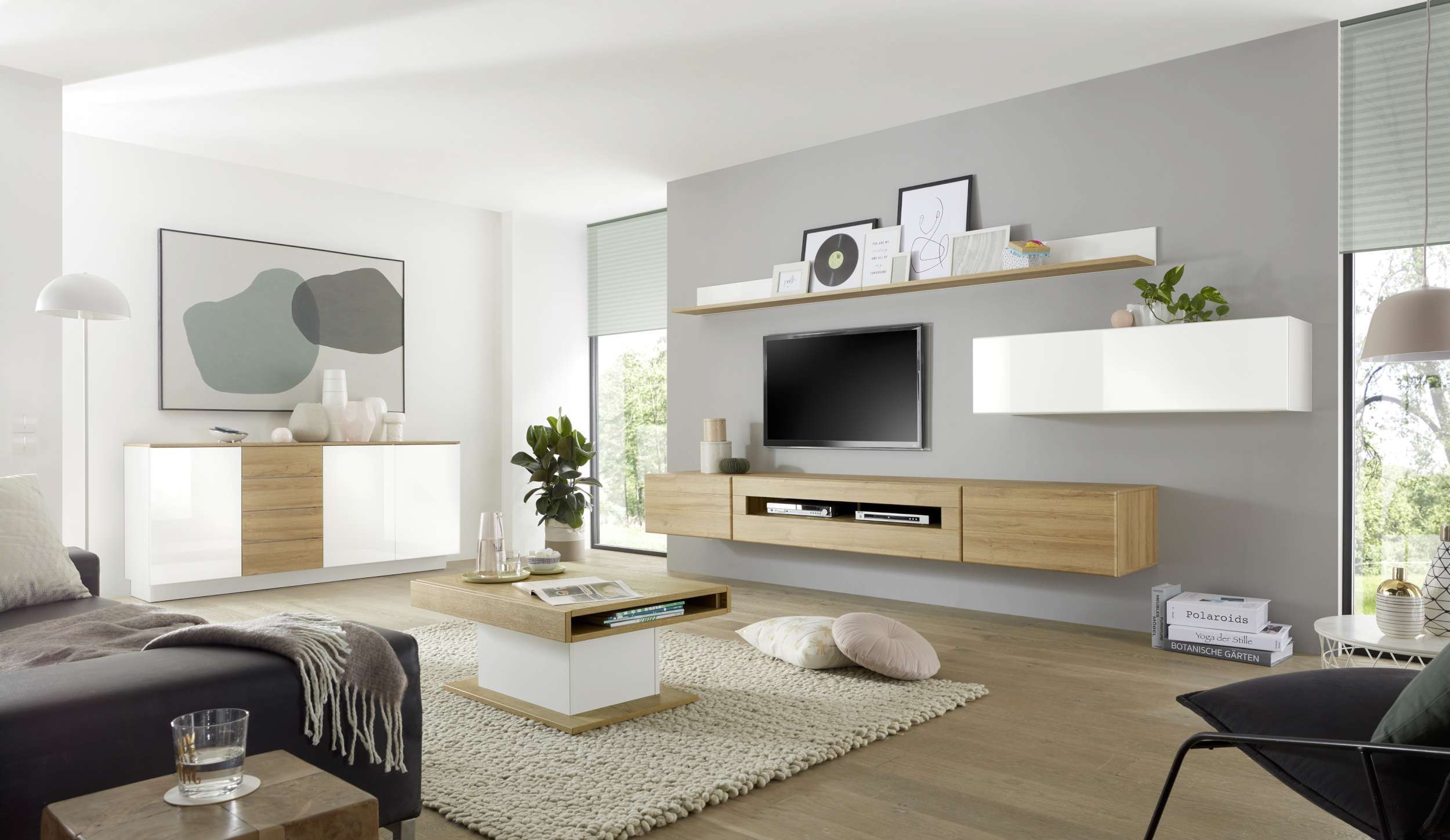 | Lieferumfang | 1x Lowboard, 2x Lowboard, 1x Hängeschrank, 2x Wandboard, 1x Couchtisch, 1x Kommode |