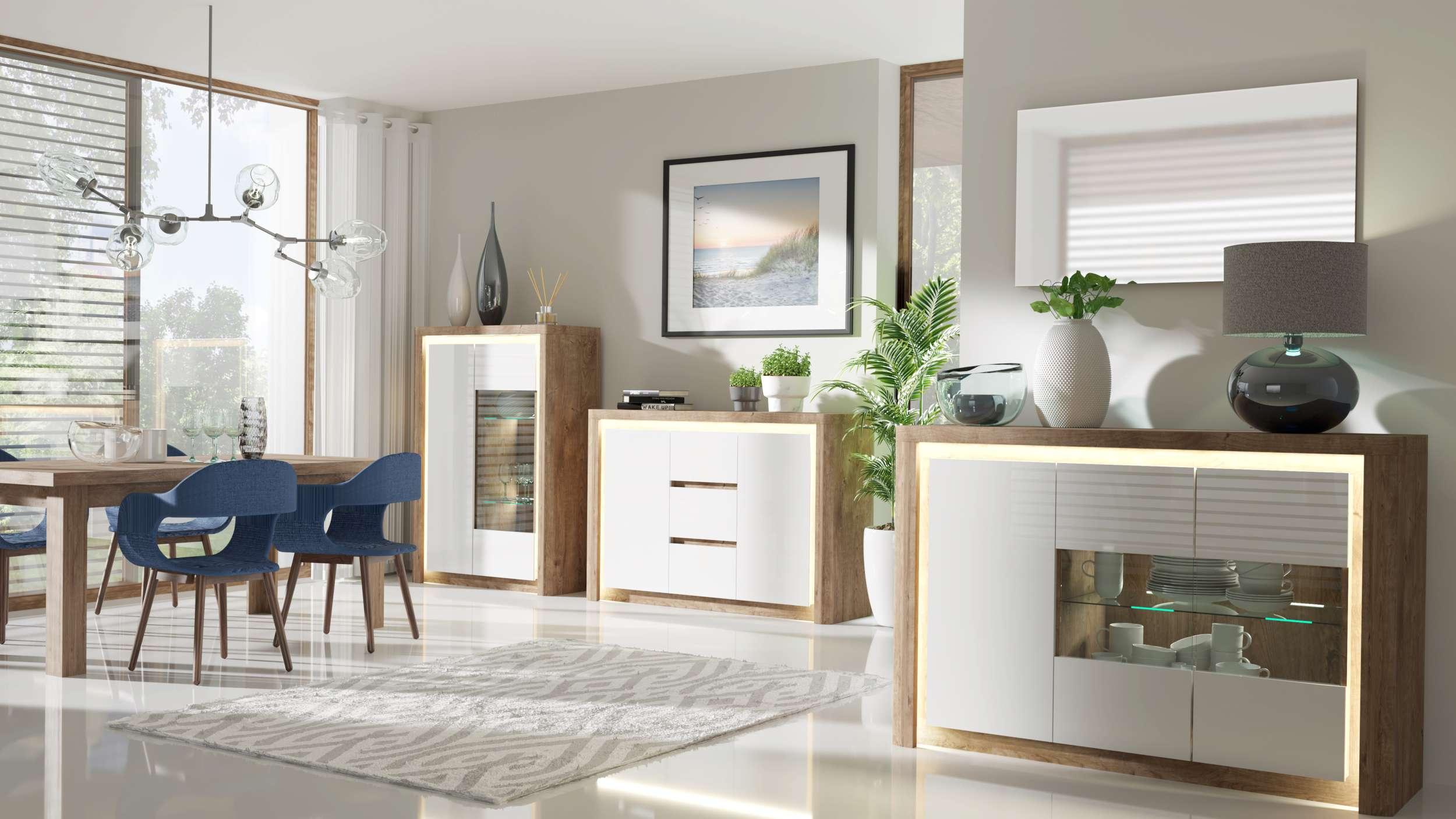 | Name | Stylefy Levino Wohnzimmerset I Ribbeck Eiche Weiß Hochglanz |