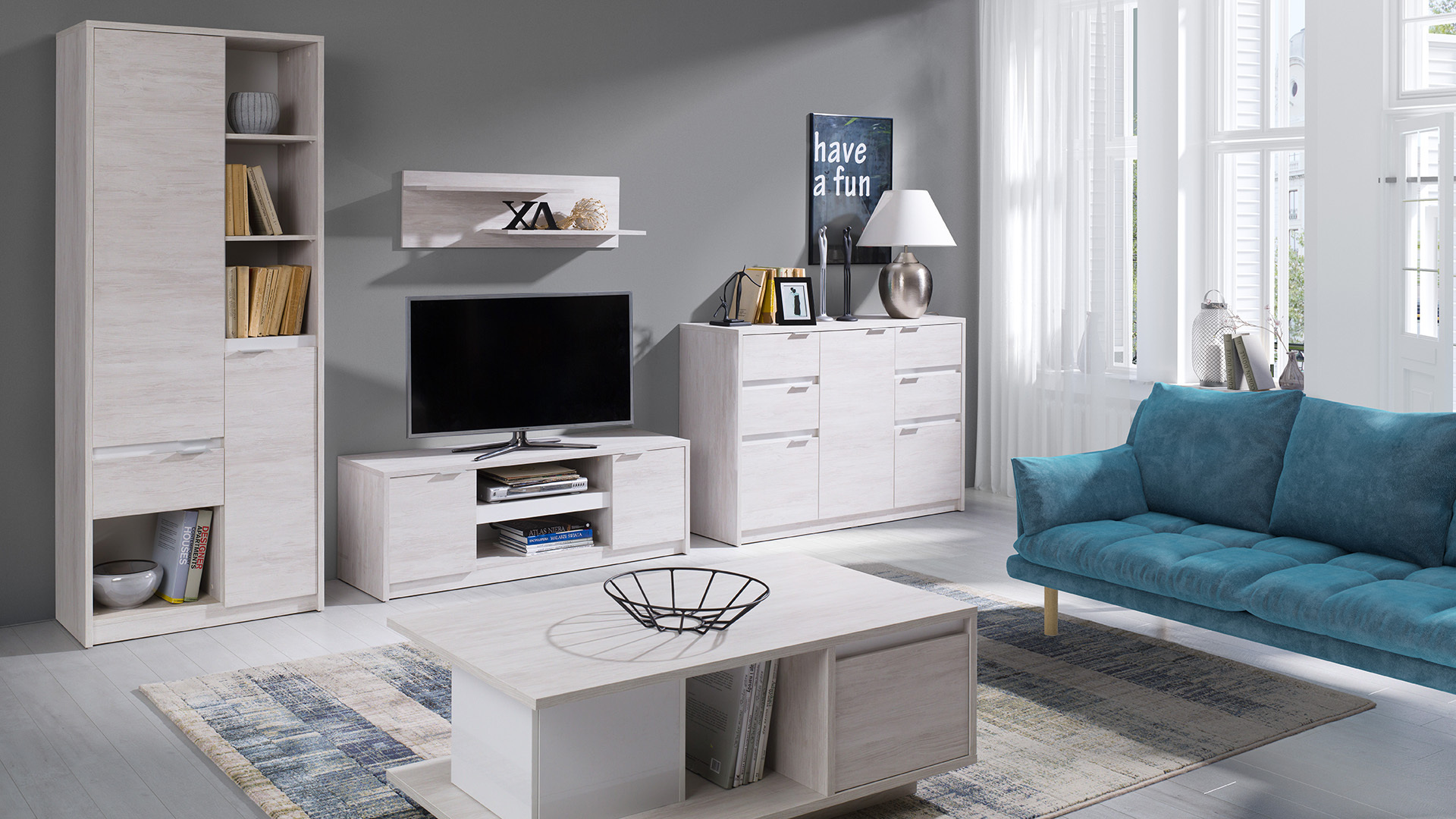 | Lieferumfang | 1x Kommode, 1x Couchtisch, 1x Wandboard, 1x Standvitrine, 1x Lowboard |
