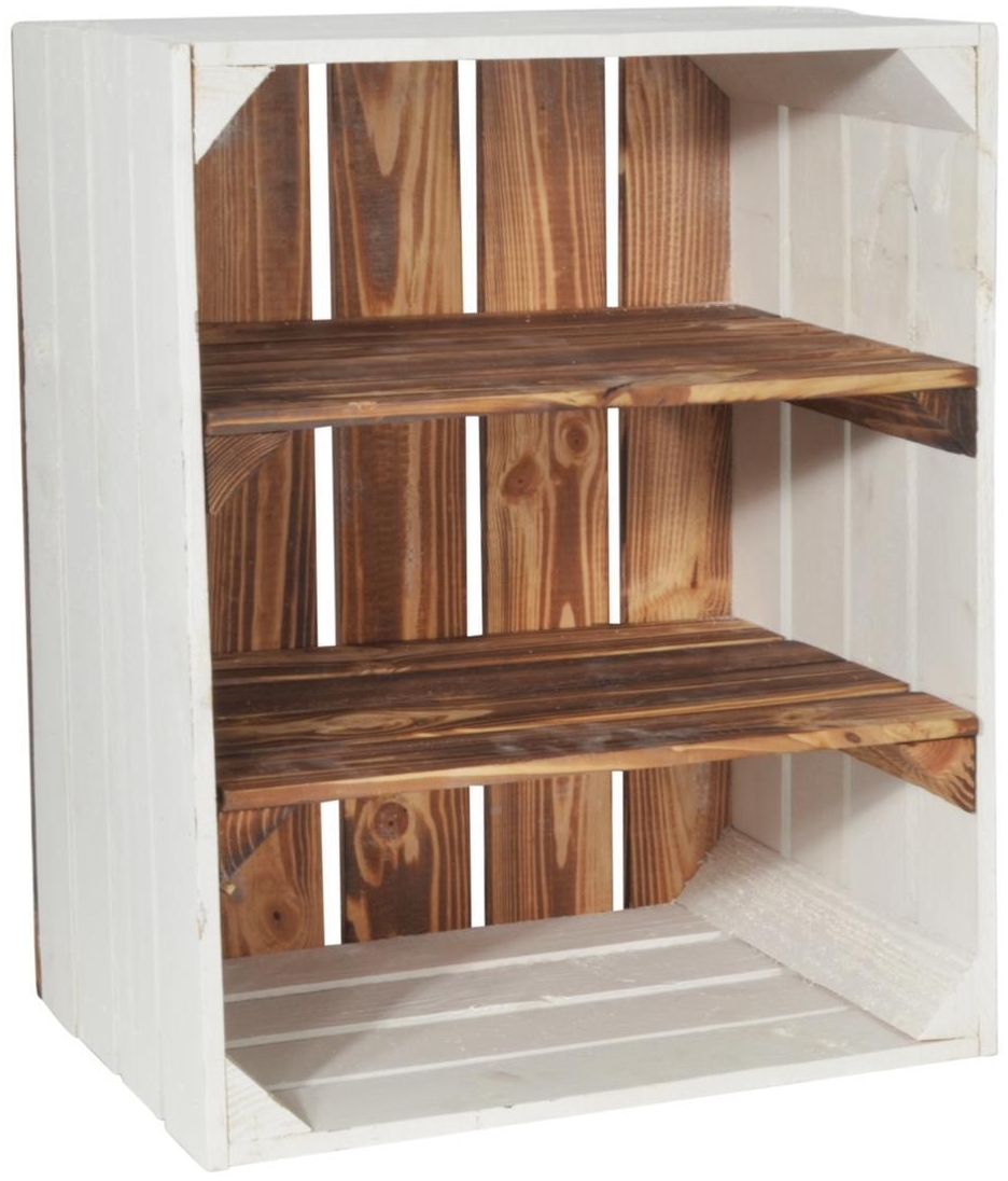 in WohnzimmerCHICCIE 3 Set Holzkiste Grete Geflammt Weiß - 2x Kurzes Regal Obstkiste Dekokiste Weinkiste