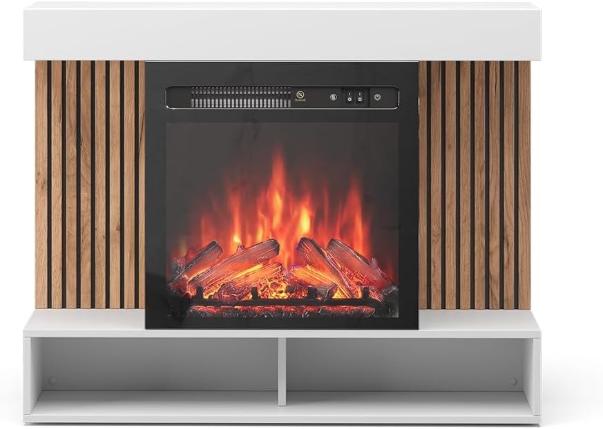 Elektrokamin Lynea Weiß 100 cm mit realistischem Flammeneffekt und Heizung 1800W Vicco