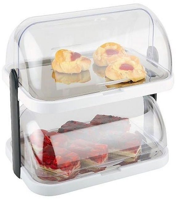 - Sie ist aus robustem weißen Kunststoff gefertigt und verfügt über eine glasklare Plexiglas-Haube mit Rolltopdeckel, der von beiden Seiten geöffnet werden kann.