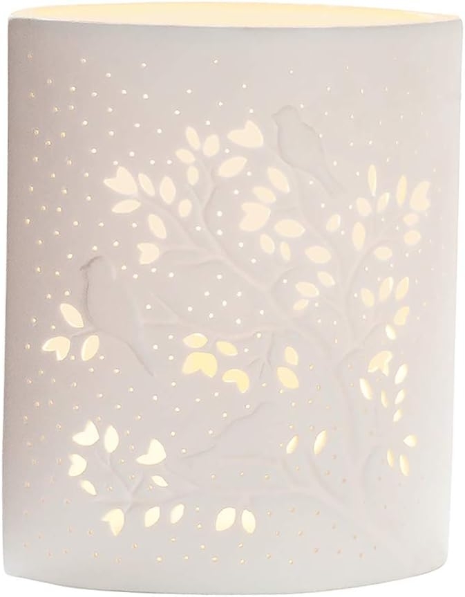 | Name | GILDE Tisch Leuchte Tischlampe Dekolampe Vögel auf Baum - aus edlem Porzellan mit Lochmuster H 20 cm |
