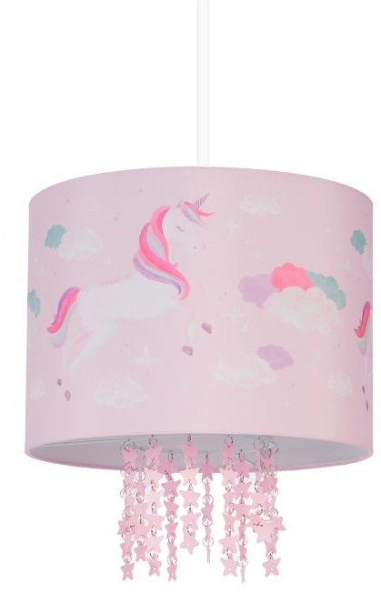 - Die Hängelampe hat einen runden Lampenschirm mit einem niedlichen Einhorn-Motiv, das kleine Träumer begeistert.