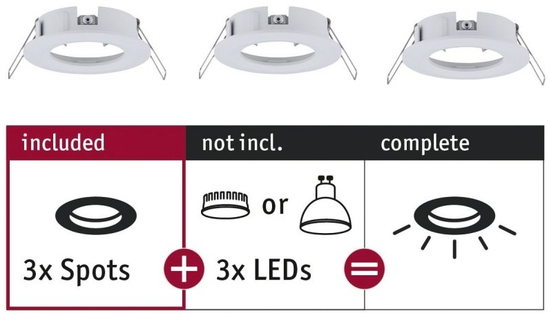- Das Set besteht aus 3 starren Einbauringen, die mit allen Leuchtmitteln der Choose-Serie kompatibel sind.
