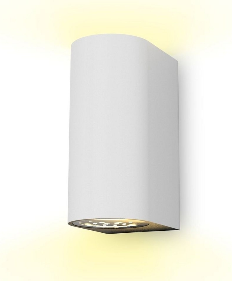 Die B.K. Licht Wandlampe ist eine elegante Außenleuchte, die mit ihrer warmweißen Lichtfarbe von 3.000 Kelvin ein stimmungsvolles Ambiente schafft. Mit zwei LEDs, die nach oben und unten strahlen, verleiht sie Ihrem Außenbereich einen modernen Look. Die Lampe hat kompakte Maße von 15,1 x 6,7 x 9,2 cm und eignet sich ideal für die indirekte Beleuchtung von Terrasse, Balkon oder Garage. **Highlights** - Vielseitig einsetzbar als Haustür-, Garten- oder Treppenbeleuchtung - Warmweiße Lichtfarbe für ein stimmungsvolles Ambiente - Strahlt mit 2 LEDs nach oben und unten für einen modernen Look - Einfacher Wechsel der GU10 Leuchtmittel - Maße: 15,1 x 6,7 x 9,2 cm **Produkteigenschaften** - Leistung: je 5 Watt - Lichtstärke: 400 Lumen - Lichtfarbe: warmweiß (3.000 Kelvin) - Fassung: GU10 - Material: Kunststoff - Farbe: Weiß - Abmessungen: 15,1 x 6,7 x 9,2 cm