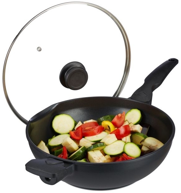 | Name | Relaxdays Wokpfanne mit Deckel, Aluminium Schwarz, 30,0 cm |
