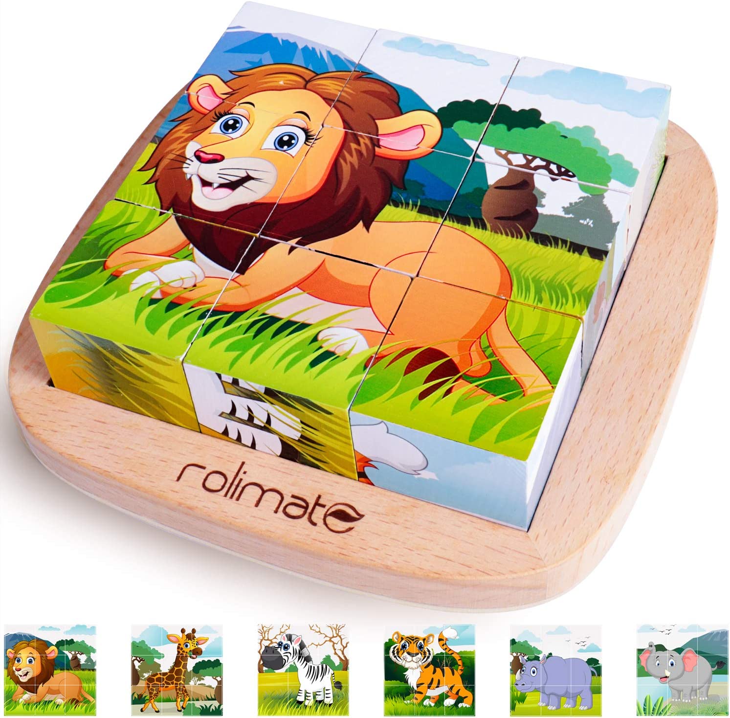 in WürfelpuzzlesRolimate Bilderwürfel HolzHolzpuzzle 3D Würfelpuzzle Puzzlespiele 6 in 1 Tier-Motive mit 9 Würfel Holzspielzeug für Kinder ab 2 3 4 Jahren, Montessori Vorschule Lernspielzeug, 16 x 16cm, bunt
