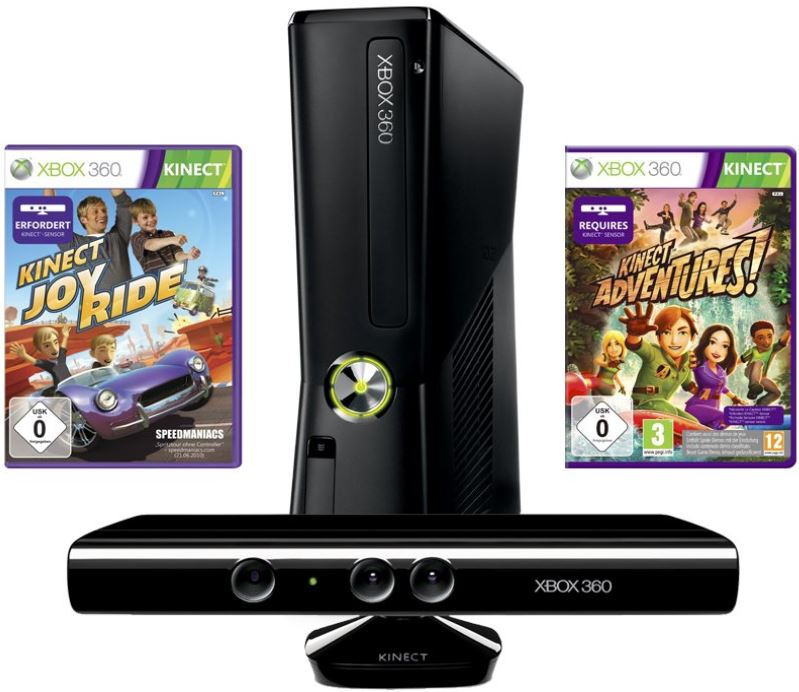 Microsoft Xbox 360 S Schwarz 4GB Bundle inkl. Kinect Joy Ride + Kinect Adventures!