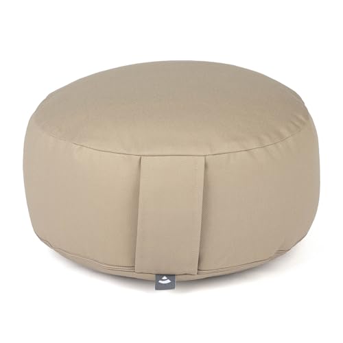 in Yoga-AugenkissenBodhi Meditationskissen Rondo ECO | Yogakissen mit Bio Dinkelfüllung | Bezug aus 100% Baumwolle | Waschbarer Bezug mit praktischer Trageschlaufe | Höhe 20 cm (Light Taupe)