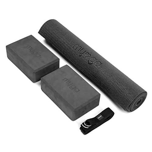 Myga Yoga-Starter-Setinklusive Yogamatte, 2 rutschfeste Yoga-Blöcke und 2-in-1 Yogagurt mit Metall-D-Ring, schwarz
