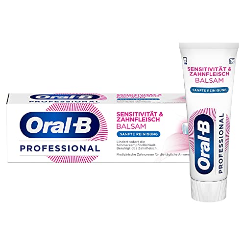 - Die Oral-B Professional Sensitivität & Zahnfleisch Balsam Sanfte Reinigung Zahncreme lindert sofort die Schmerzempfindlichkeit durch die Bildung einer Schutzschicht und beruhigt das Zahnfleisch