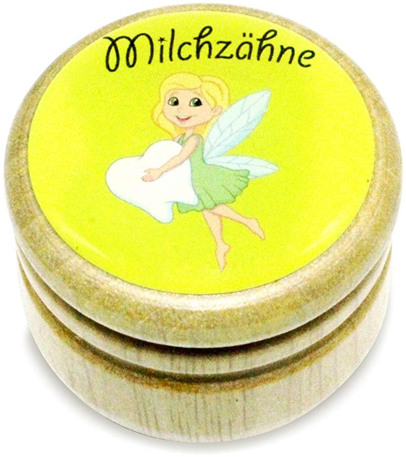 in ZahnpflegeMilchzahndoseZahndose Milchzähne Bilderdose aus Holz mit Drehverschluss in diversen Motiven für Jungen und Mädchen mit Drehverschluss 44 mm (ZAHNFEE) -Made in EU-7015