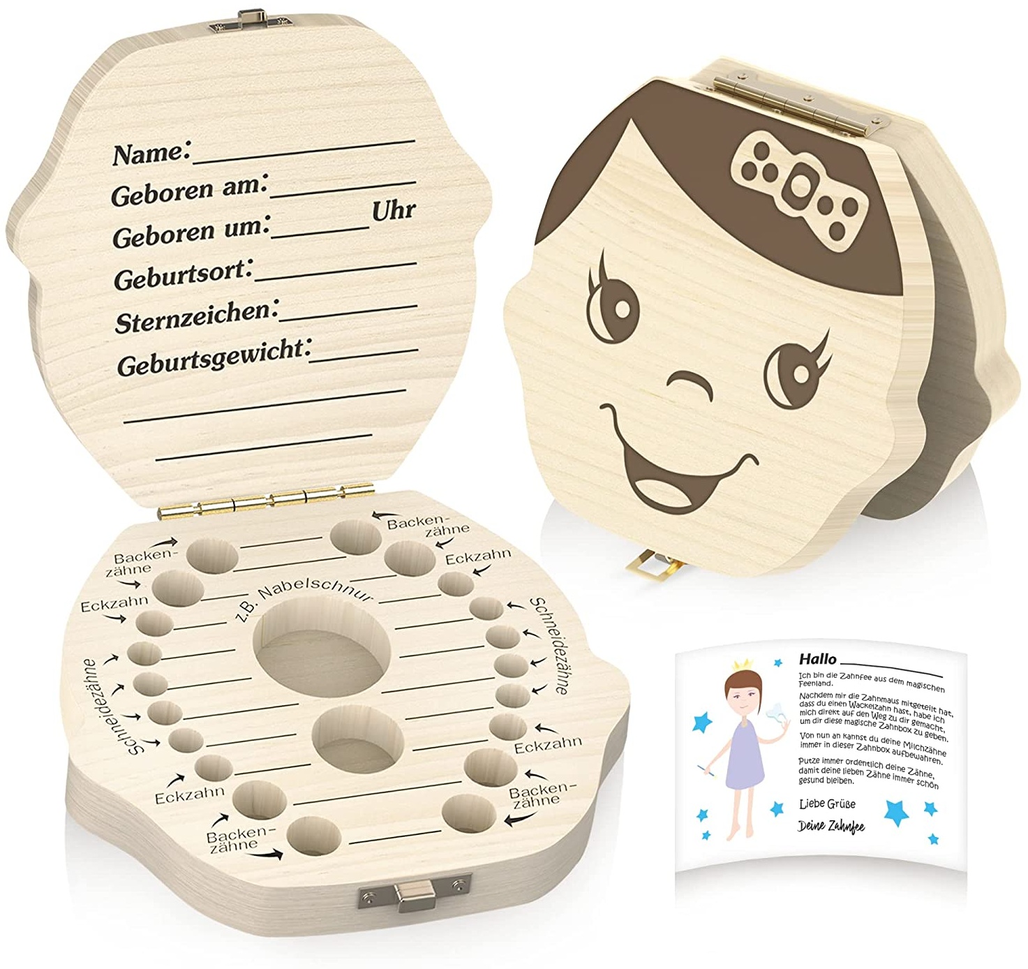 in ZahnpflegeOriginal Zrilubkrelz® Zahnbox Zahndose für Kinder aus Holz | inkl. Brief | Deutsche Sprache | 2 Versionen für Junge & Mädchen | Milchzahndose Milchzahnbox für Milchzähne als Geschenk Geburt