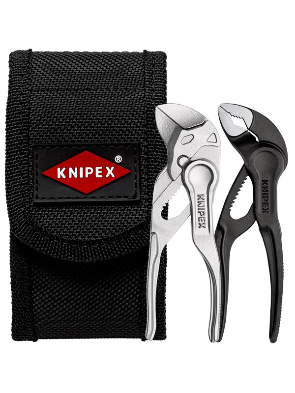 - Der Knipex Zangensatz XS besteht aus einem Zangenschlüssel XS und einer KNIPEX Cobra® XS, die beide in einer praktischen Gürteltasche geliefert werden.