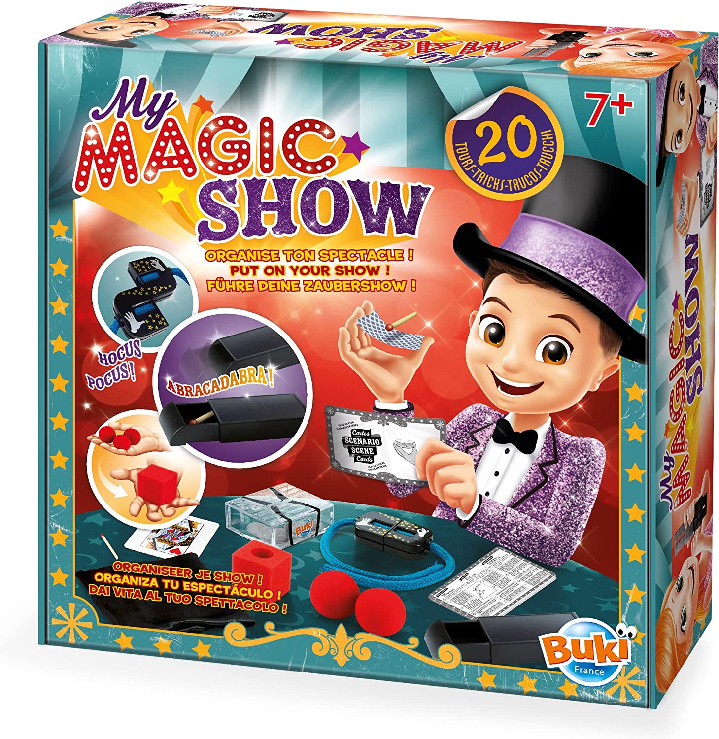 | Beschreibung | Eine Box für die Durchführung einer echten Zaubershow ! Die 24 Karten enthalten Vorschläge, wie das Kind die Show moderieren und durchführen kann ! Farbig illustrierte Anleitung und 24 illustrierte Karten. Ab 7 Jahren, Hersteller: BUKI France |