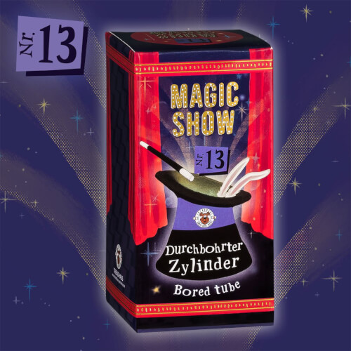 - Der MAGIC SHOW Trick 13 Durchbohrter Zylinder ist ein spannender Zaubertrick, der für Kinder ab 6 Jahren geeignet ist.