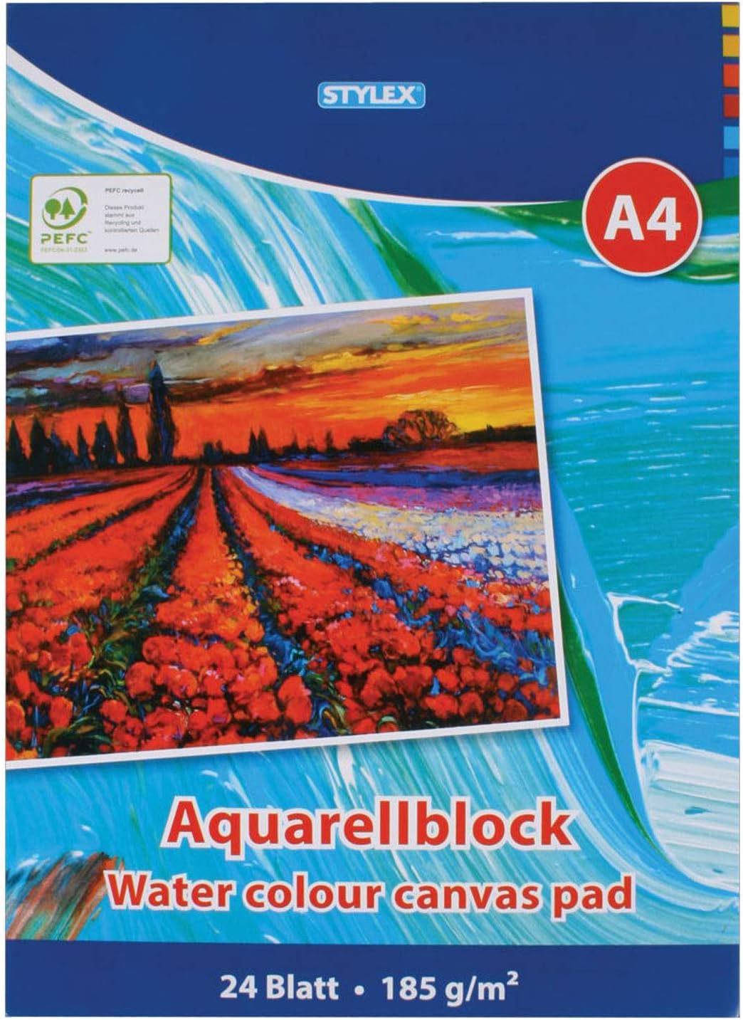 | Name | Stylex 28690 - Aquarellblock DIN A4, 24 Blatt 185 g/m², mit Kopfleimung, ideal für Amateur- und professionelle Künstler gleichermaßen |