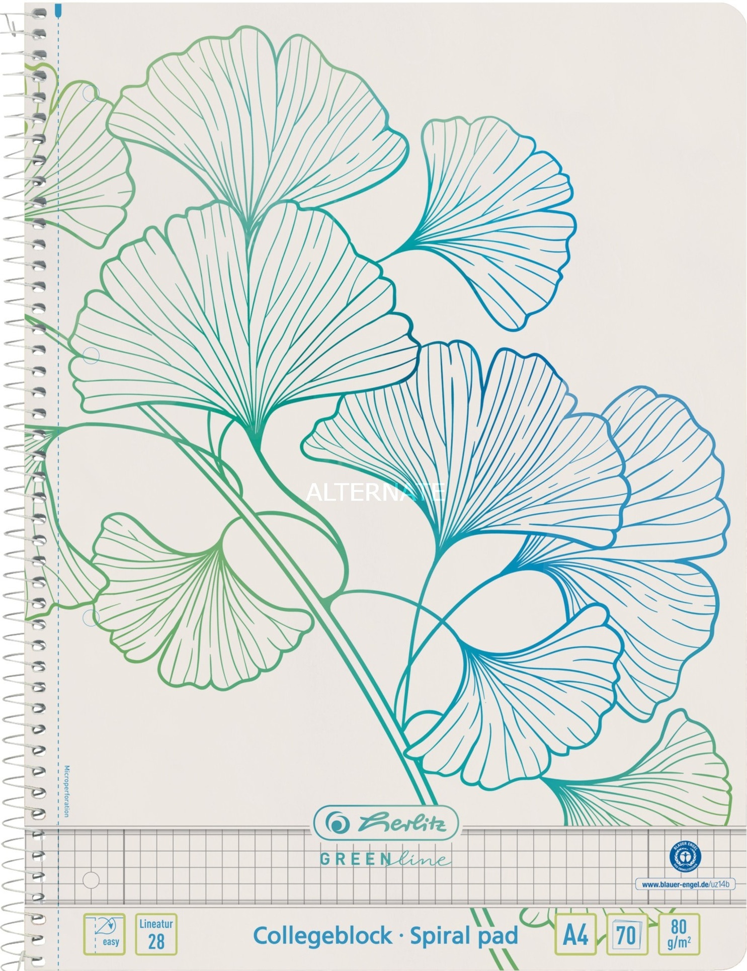 - Das Herlitz Notizheft A5 punktiert GREENline Ginkgo besteht aus 80g/m² Recycling-Papier mit 40 Blatt
