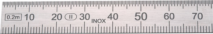 - Der Maßstab hat eine Größe von 300 x 30 x 1 mm.