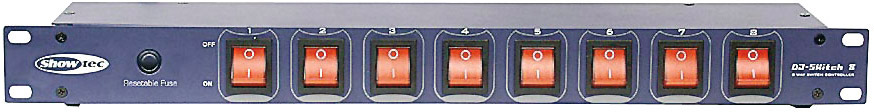 - Das Showtec DJ-Switch 8 ist eine 8-Kanal-Schaltkonsole, die eine einfache Steuerung von Bühnenbeleuchtung ermöglicht.