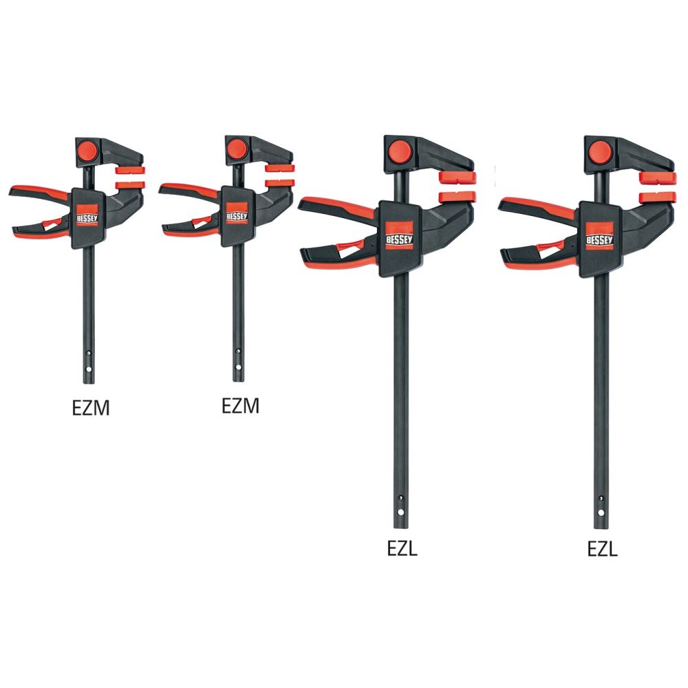 - Das Bessey Einhandzwingen-Set EZM bietet eine vielseitige Anwendung mit Spannweiten von 110 bis 900 mm und Spannkräften von 200 N bis 2.700 N.